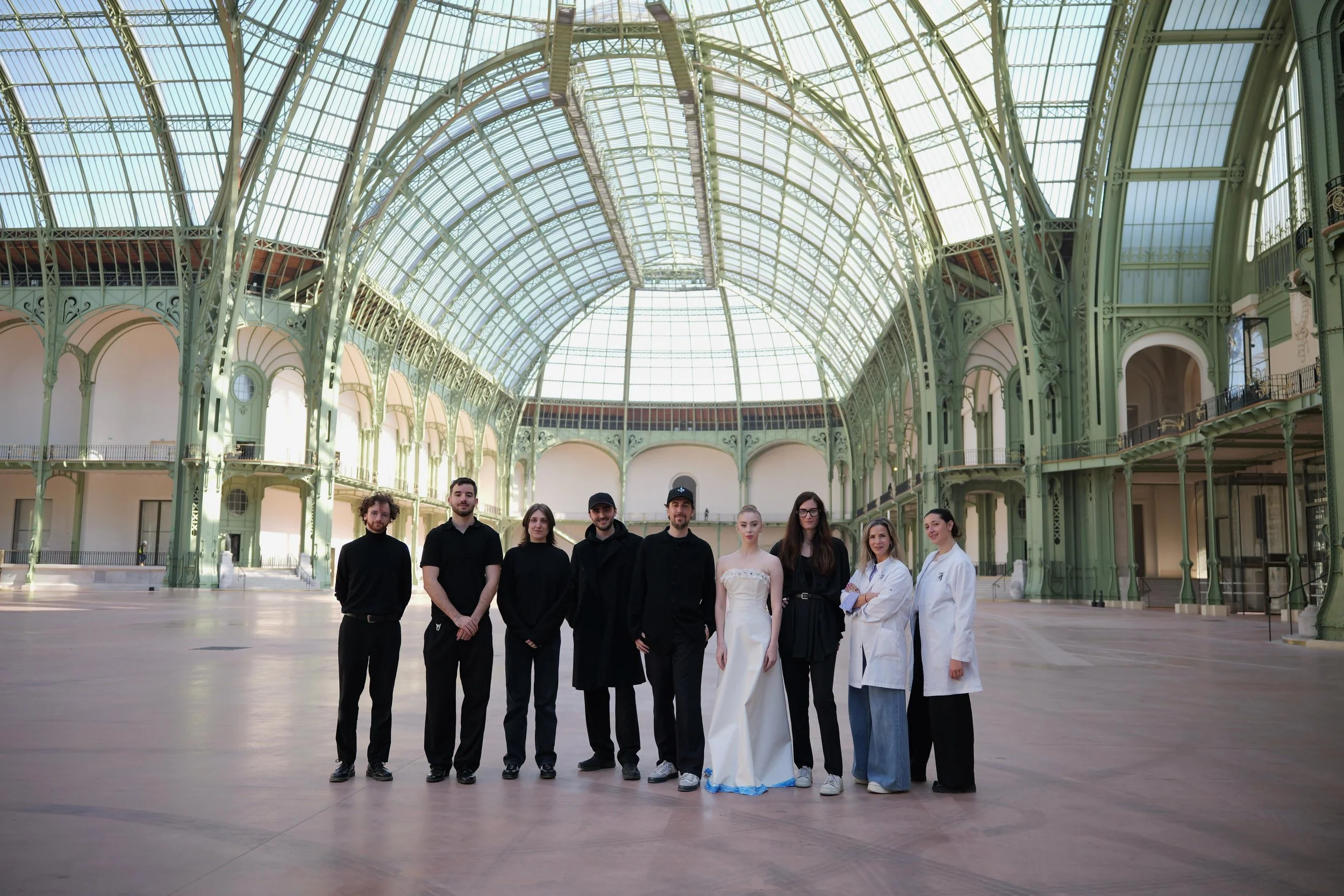 At that point, the path becomes clear too. To entrust these materials to the highest expression of savoir-faire, collaborating with one of the finest haute couture ateliers in the world. That is exactly what we did. We brought our materials and the design of a long gown to a legendary Parisian atelier, located near the Opéra. Few words were needed. In the hands of these exceptional artisans, tailors whose knowledge goes beyond techniques, the magic unfolded naturally. In just a few days, the dress came to life.